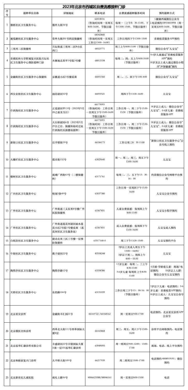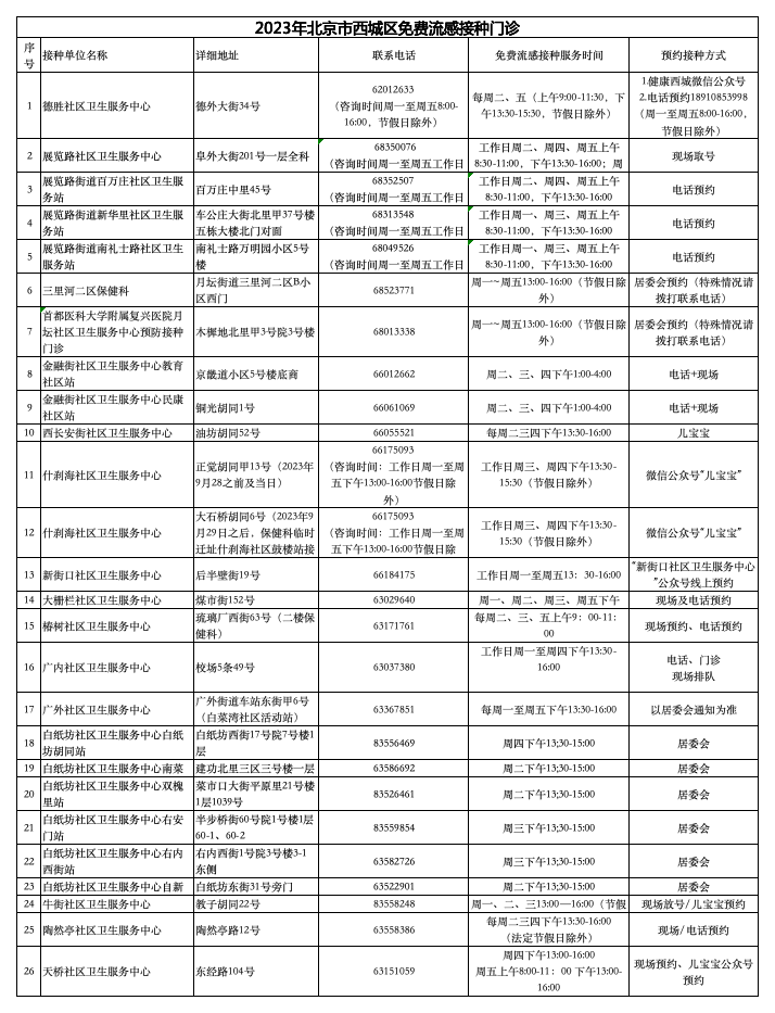 北京西城區(qū)流感疫苗接種門診服務時間公示來了,具體事宜可咨詢接種門診