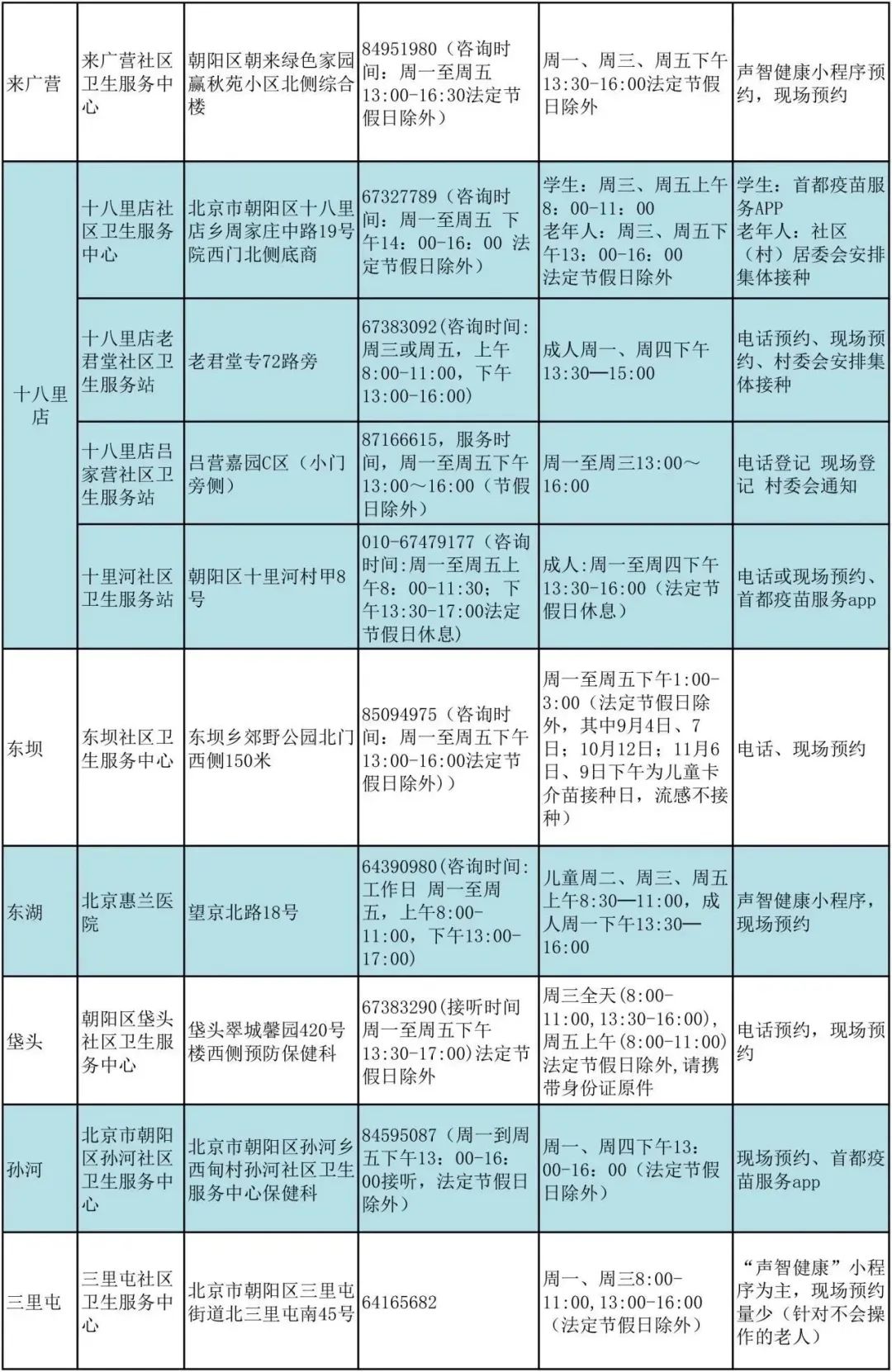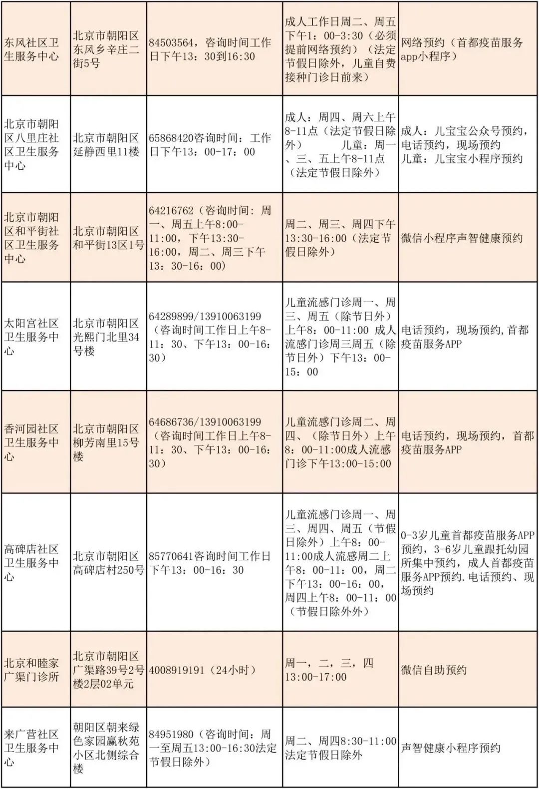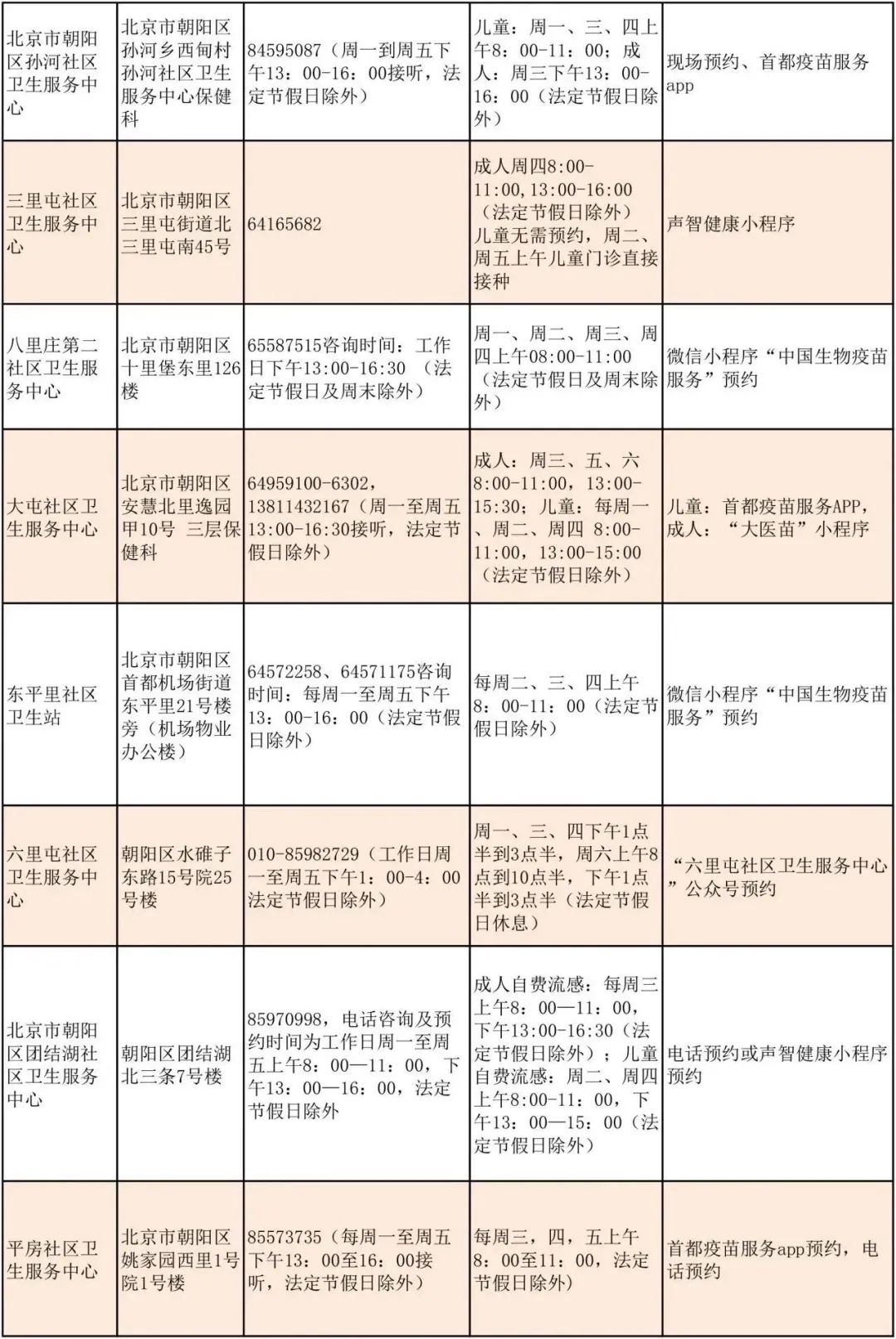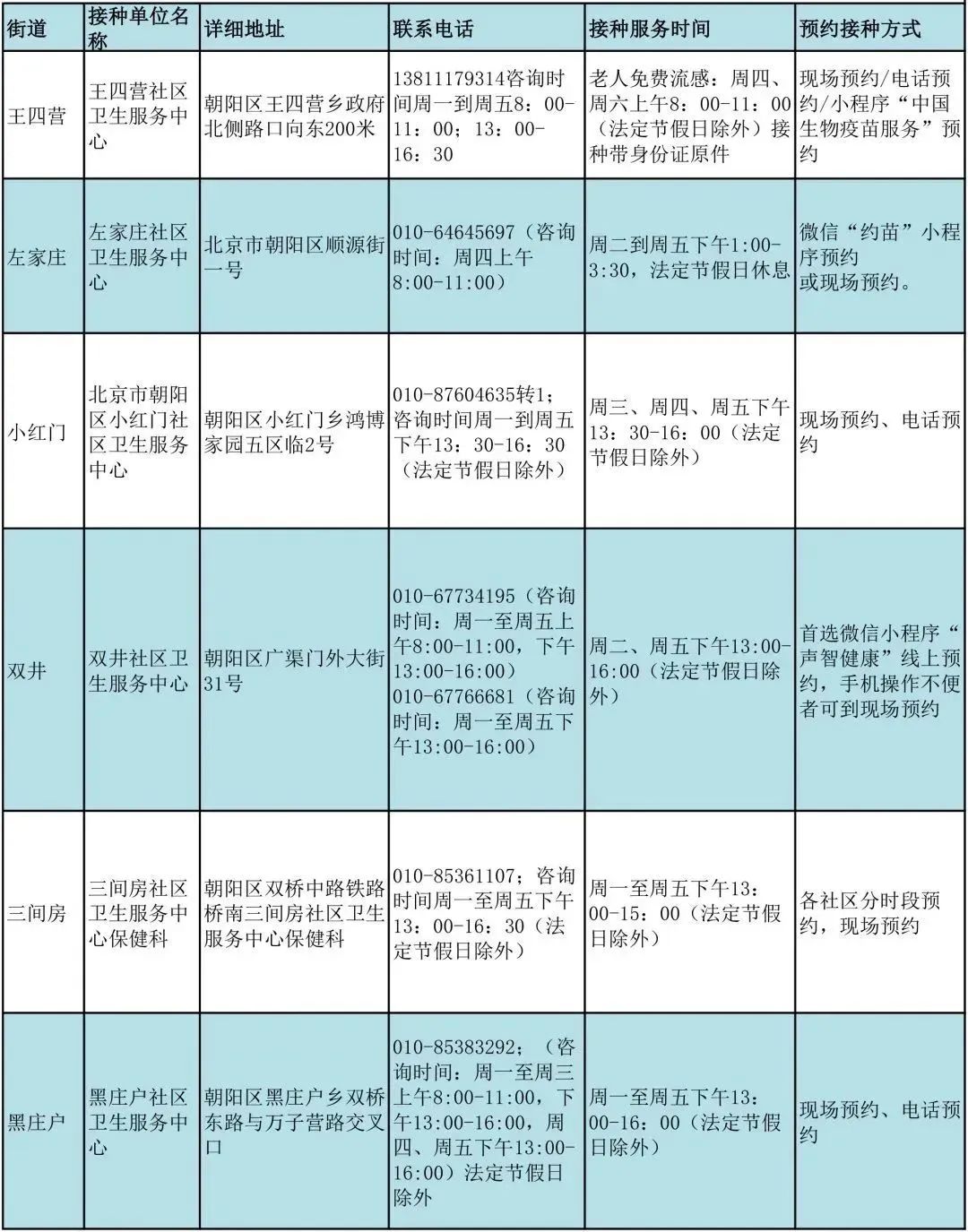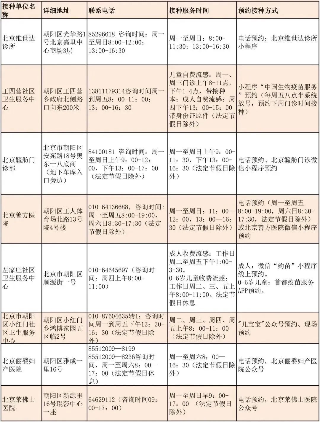 北京朝陽區流感疫苗接種門診服務時間公示來了,具體事宜可咨詢接種門診